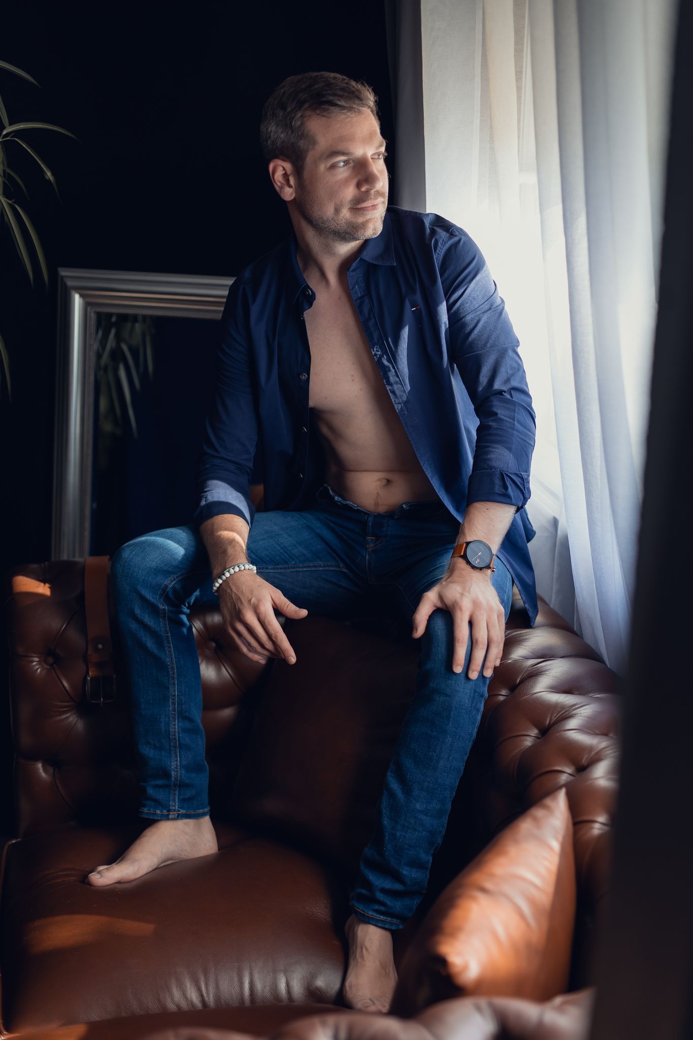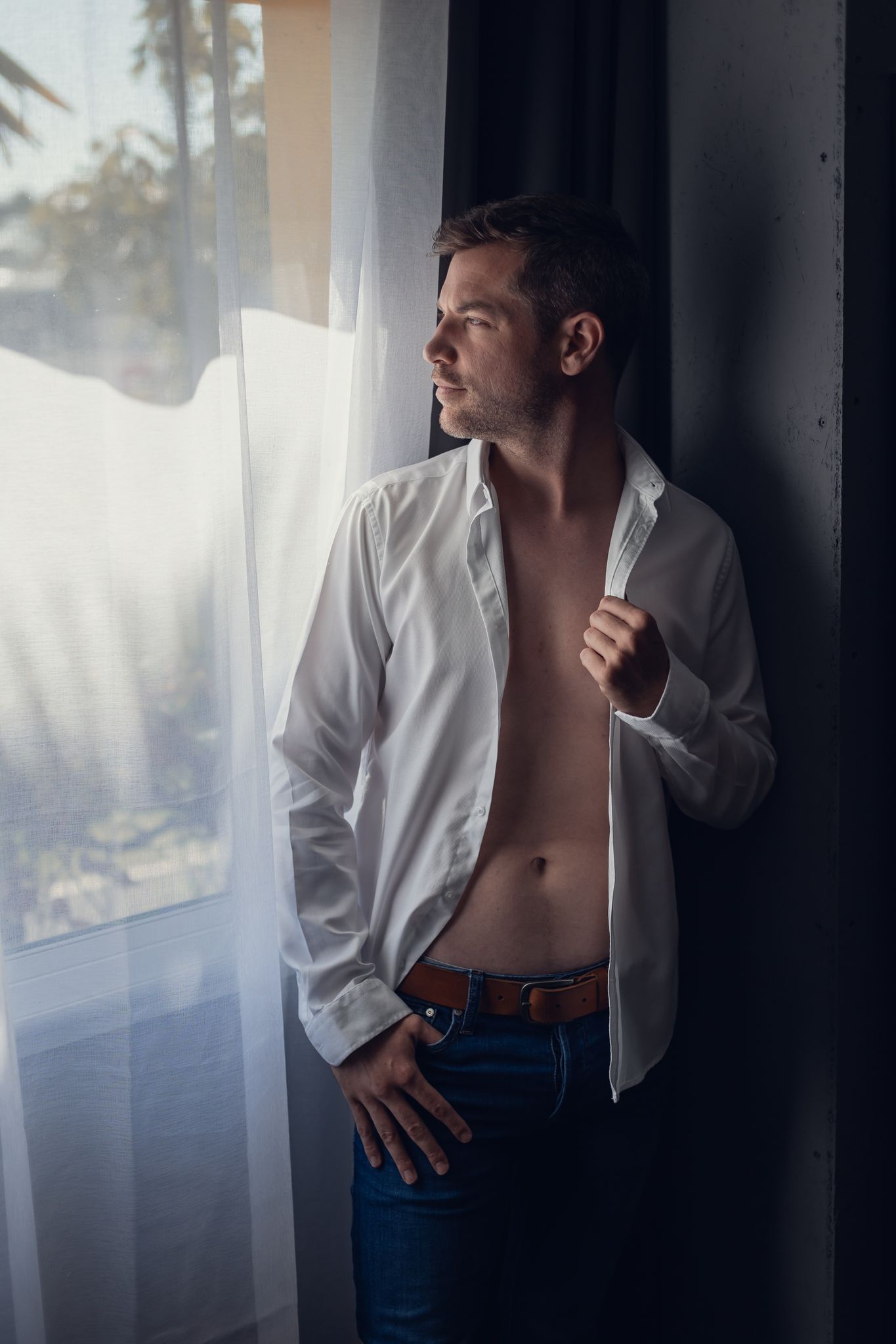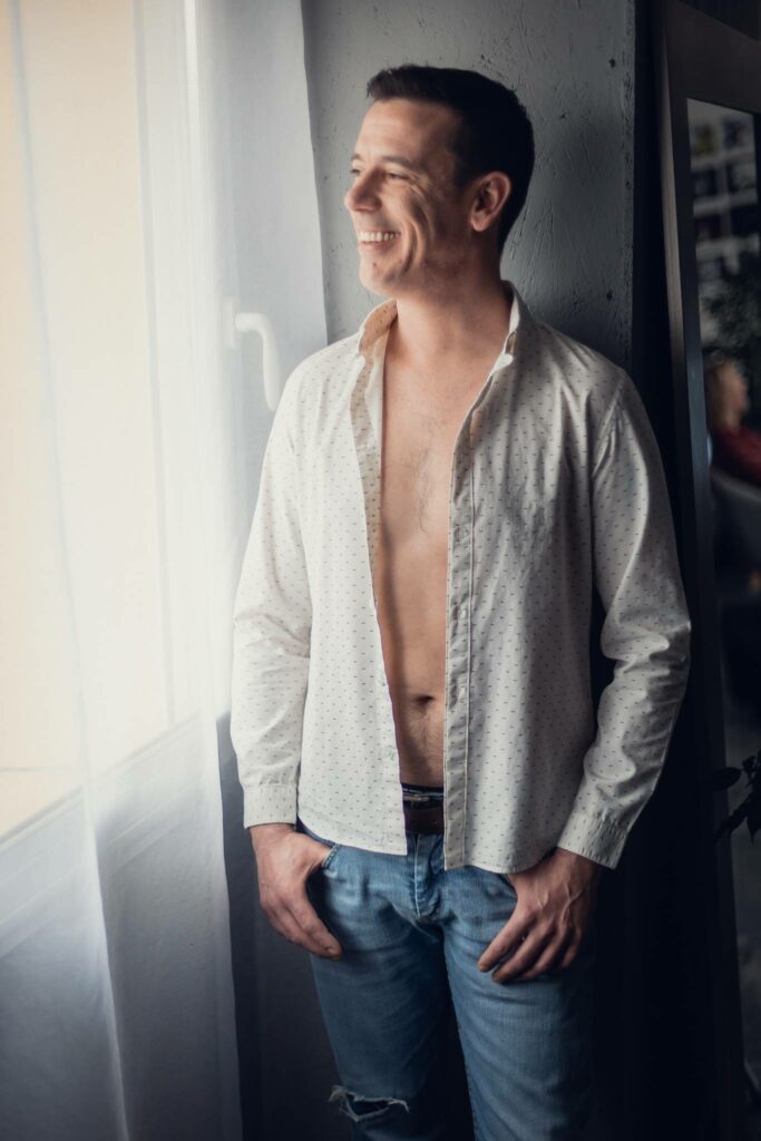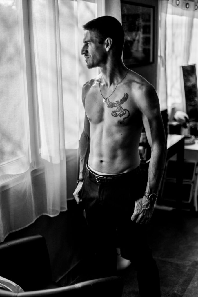 “Ce n’est pas pour moi, c’est trop féminin.” Justement non. Le boudoir masculin, c’est une esthétique à part entière : lumière, contraste, force tranquille. Pas de pose forcée — juste ton énergie, mise en valeur.